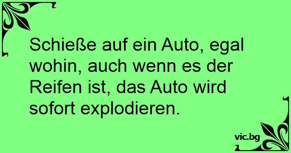 Schieße auf ein Auto, egal wohin, auch wenn es der Reifen ist, das Auto wird sofort explodieren.