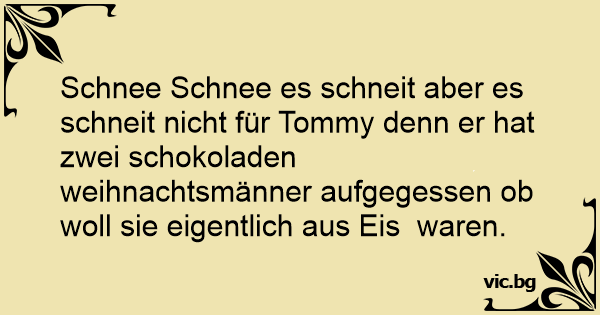 Schnee Schnee es schneit aber es schneit niсhт für Tommy denn er hat zwei schokoladen weihnachtsmänner aufgegessen ob woll sie eigentlich aus Eis waren.