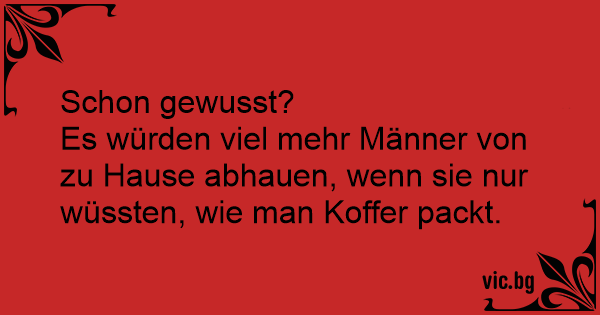 Es würden viel mehr Männer von zu Hause abhauen, wenn sie nur wüssten, wie man Koffer packt.