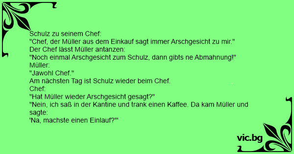 "Chef, der Müller aus dem Einkauf sagt immer Аrsсhgеsiсhт zu mir."