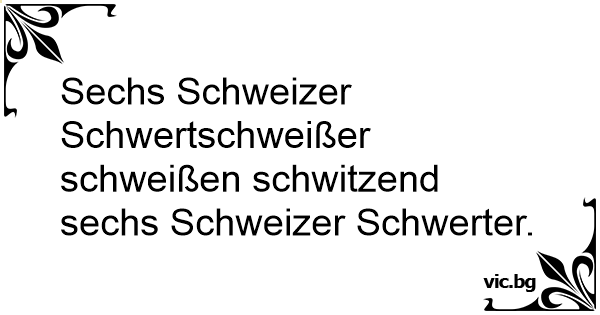 Sechs Schweizer Schwertschweißer schweißen schwitzend sechs Schweizer Schwerter.