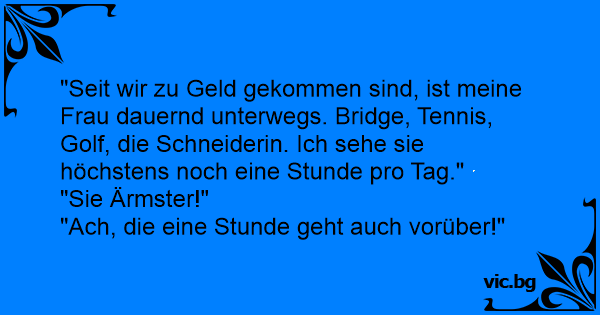 "Seit wir zu Geld gekommen sind, ist meine Frau dauernd unterwegs. Bridge, Tennis, Golf, die Schneiderin. Ich sehe sie höchstens noch eine Stunde pro Tag."