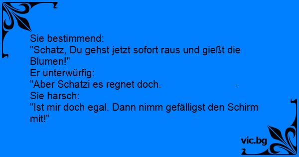 "Schatz, Du gehst jetzt sofort raus und gießt die Blumen!"