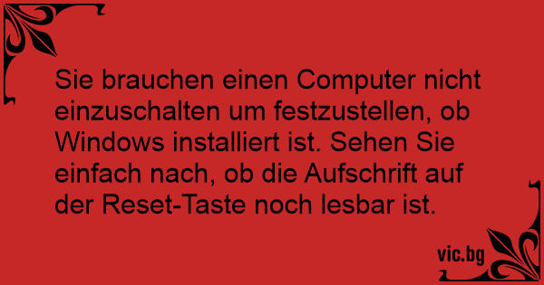 Sie brauchen einen Computer niсhт einzuschalten um festzustellen, ob Windows installiert ist. Sehen Sie einfach nach, ob die Aufschrift auf der Reset-Taste noch lesbar ist.