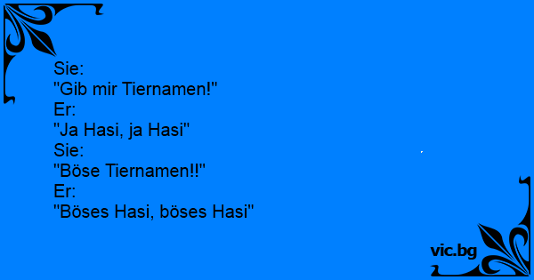 Sie: "Gib mir Tiernamen!"...