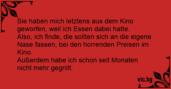 Sie haben mich letztens aus dem Kino geworfen, weil ich Essen dabei hatte.