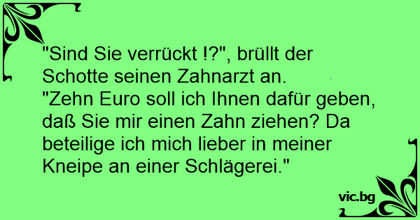 "Zehn Euro soll ich Ihnen dafür geben, daß Sie mir einen Zahn ziehen? Da beteilige ich mich lieber in meiner Kneipe an einer Schlägerei."