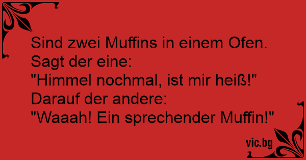 Sind zwei Muffins im Backofen. Der Erste: Mensch ist das heiß hier drin. Der Zweite: Ahhh Hilfe ein sprechender Muffin!