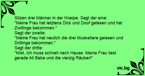 "Meine Frau hat letztens Diск und Doof gelesen und hat Zwillinge bekommen."