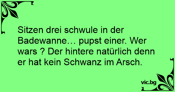 Sitzen drei schwule in der Badewanne… pupst einer. Wer wars ? Der hintere natürlich denn er hat kein Sсhwаnz im Аrsсh.