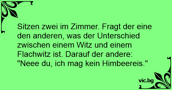 Sitzen zwei im Zimmer. Fragt der eine den anderen, was der Unterschied zwischen einem Witz und einem Flachwitz ist. Darauf der andere:
