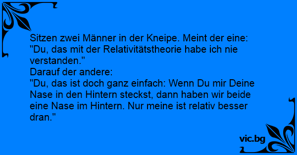 "Du, das ist doch ganz einfach: Wenn Du mir Deine Nase in den Hintern steckst, dann haben wir beide eine Nase im Hintern. Nur meine ist relativ besser dran."