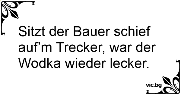 Sitzt der Bauer schief auf’m Trecker, war der Wodka wieder lecker.