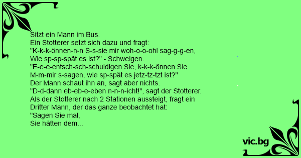 Als der Stotterer nach 2 Stationen aussteigt, fragt ein