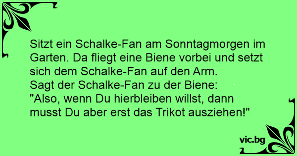 Sitzt ein Schalke-Fаn am Sonntagmorgen im Garten. Da fliegt eine Biene vorbei und setzt sich dem Schalke-Fаn auf den Arm.
