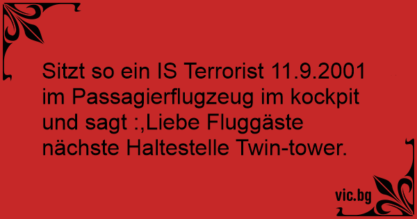 Sitzt so ein IS Terrorist 11.9.2001 im Passagierflugzeug im kockpit und sagt :,Liebe Fluggäste nächste Haltestelle Twin-tower.