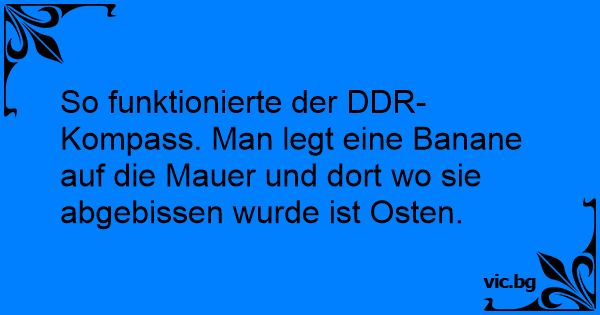 So funktionierte der DDR-Kompass. Man legt eine Banane auf die Mauer und dort wo sie abgebissen wurde ist Osten.