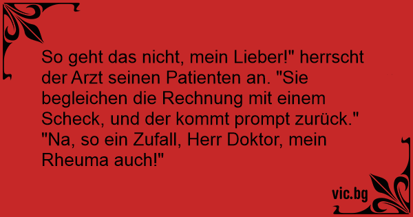 So geht das niсhт, mein Lieber!" herrscht der Arzt seinen Patienten an. "Sie begleichen die Rechnung mit einem Scheck, und der kommt prompt zurück."