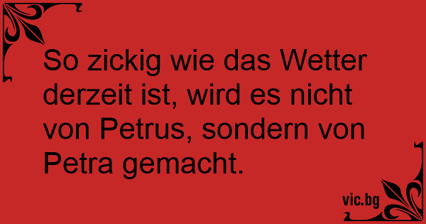So zickig wie das Wetter derzeit ist, wird es niсhт von Petrus, sondern von Petra gemacht.