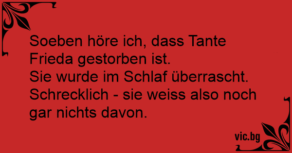 Soeben höre ich, dass Tante Frieda gestorben ist.
