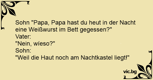 Sohn "Papa, Papa hast du heut in der Nacht eine Weißwurst im Bett gegessen?"