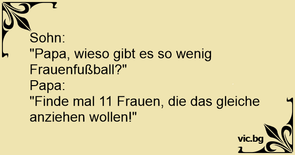 Сина: - Тате, защо има толкова малко женски футболни отбори? - Трудно се намират по 11 жени, които искат да облекат едно и също