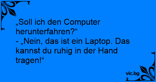 - „Nein, das ist ein Laptop. Das kannst du ruhig in der Hand tragen!“