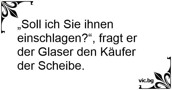 „Soll ich Sie ihnen einschlagen?“, fragt er der Glaser den Käufer der Scheibe.