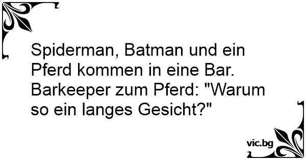 Spiderman, Batman und ein Pferd kommen in eine Bar.