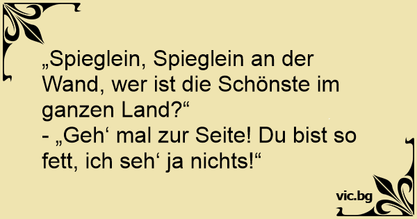 Дебелата Трпана со тежина од преку 120 кг застанала пред волшебното огледало: - Огледалце, огледалце мое, кажи ми на светот најубав кој е? Огледалото: - Де, тргни се малку, ништо не гледам!