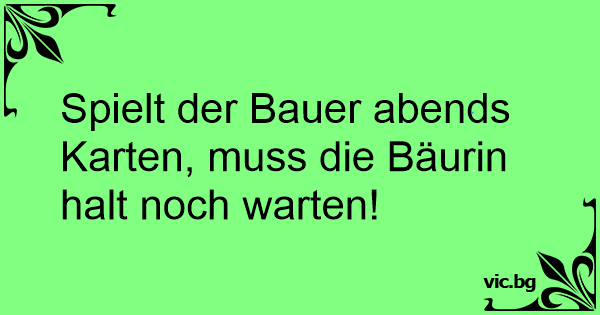Spielt der Bauer abends Karten, muss die Bäurin halt noch warten!