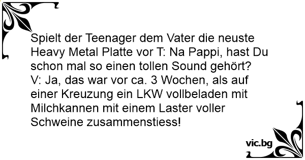 Spielt der Teenager dem Vater die neuste Heavy Metal Platte vor T: Na Pappi, hast Du schon mal so einen tollen Sound gehört?