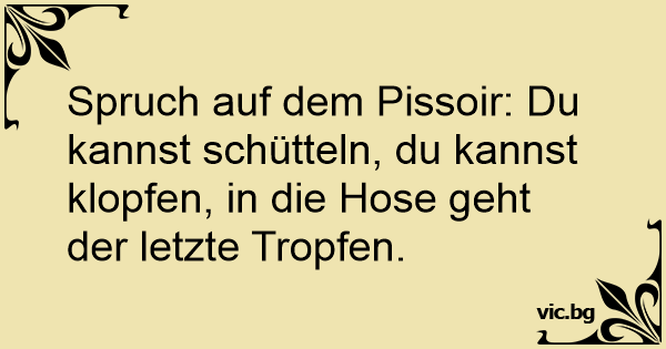 Spruch auf dem Pissoir: Du kannst schütteln, du kannst klopfen, in die Hose geht der letzte Tropfen.