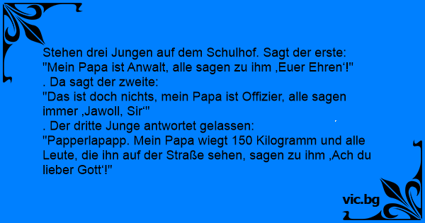 Stehen drei Jungen auf dem Schulhof. Sagt der erste: