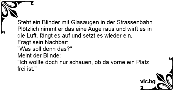 Steht ein Blinder mit Glasaugen in der Strassenbahn.