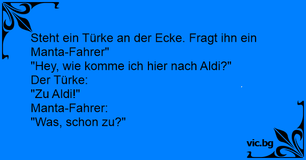 Steht ein Türke an der Ecke. Fragt ihn ein Manta-Fahrer"