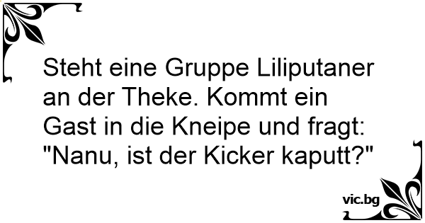 Steht eine Gruppe Liliputaner an der Theke. Kommt ein Gast in die Kneipe und fragt: