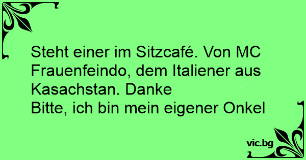 Steht einer im Sitzcafé. Von MC Frauenfeindo, dem Italiener aus Kasachstan. Danke