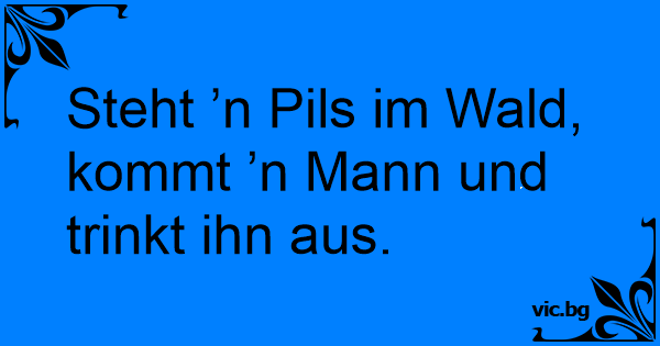 Steht ’n Pils im Wald, kommt ’n Mann und trinkt ihn aus.