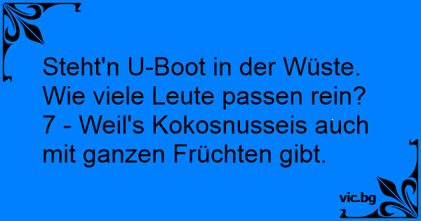 Steht'n U-Boot in der Wüste. Wie viele Leute passen rein? 7 - Weil's Kokosnusseis auch mit ganzen Früchten gibt.