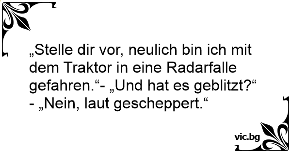„Stelle dir vor, neulich bin ich mit dem Traktor in eine Radarfalle gefahren.“- „Und hat es geblitzt?“