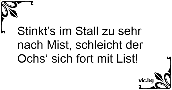 Stinkt’s im Stall zu sehr nach Мisт, schleicht der Ochs‘ sich fort mit List!