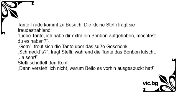 „Schmeckt´s?“, fragt Steffi, während die Tante das Bonbon lutscht. „Ja sehr!“