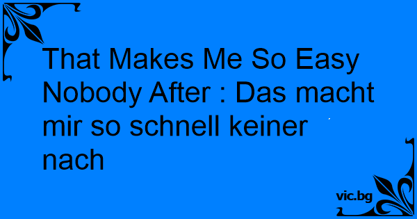 That Makes Me So Easy Nobody After : Das macht mir so schnell keiner nach