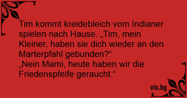 Tim kommt kreidebleich vom Indianer spielen nach Hause. „Tim, mein Kleiner, haben sie dich wieder an den Marterpfahl gebunden?“