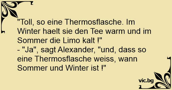 - "Страхотно нещо е тоя термос. През зимата държи чая топъл, а през лятото лимонадата студена!" - Да, само се чудя как термоса разбира кога е лято и кога зима?!