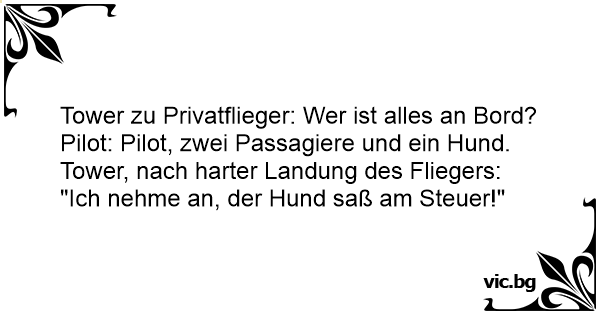 Tower zu Privatflieger: Wer ist alles an Bord? Pilot: Pilot, zwei Passagiere und ein Hund.