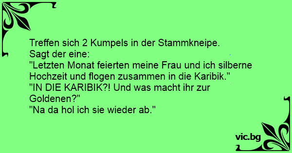 "Letzten Monat feierten meine Frau und ich silberne Hochzeit und flogen zusammen in die Karibik."