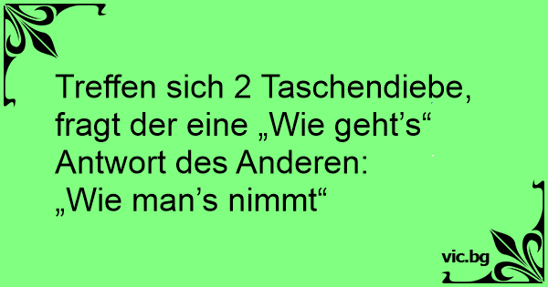 Treffen sich 2 Taschendiebe, fragt der eine „Wie geht’s“ Antwort des Anderen: