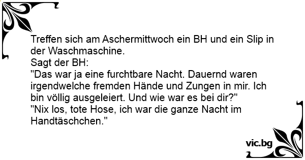 Treffen sich am Aschermittwoch ein BH und ein Slip in der Waschmaschine.
